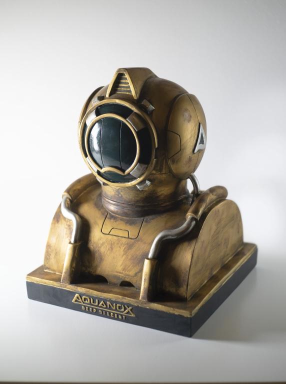 A beautiful futuristic diving helmet, bring the deep-sea atmosphere of the world of Aqua into your home. Futuristic diving helmet (replica) from the SCI-FI submarine shooter classic Aquanox Deep Descent.