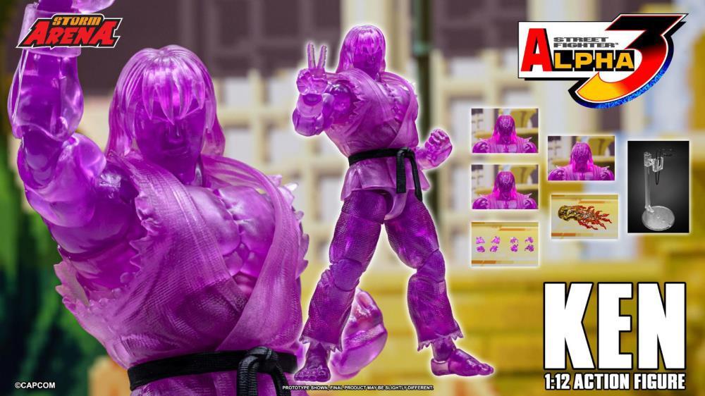 Time for the next challenger! From the fighting minds at Storm Collectibles comes the next entry in the fan favorite STORM ARENA line: Ken is back! Inspired by his appearance in the Street Fighter Alpha 3 video game, Ken is depicted in his V-ISM mode with a transparent purple hue surrounding him. Suit up and put up your dukes, it's time for a Street Fight! Order yours today! STORM ARENA is the latest line of figures from the creative minds at Storm Collectibles in 1/12 scale! With an emphasis on smaller, refined action figures, this series is the perfect way to grow your pop culture collection at affordable prices. Keep an eye out for an ever growing line up of popular characters that are coming soon!