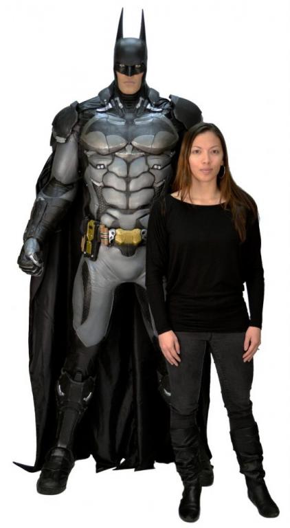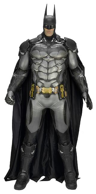 This actual size foam Batman replica figure is based on Batman: Arkham Knight, the final chapter in the acclaimed video game series. Standing a full 6' 2" tall, Batman was created directly from the digital files used in the making of the game. The figure is made of foam rubber and latex that's carefully hand-painted for incredible detail, and the finishing touch is the Dark Knight's swirling fabric cape, tailored from mixed materials for game accuracy.