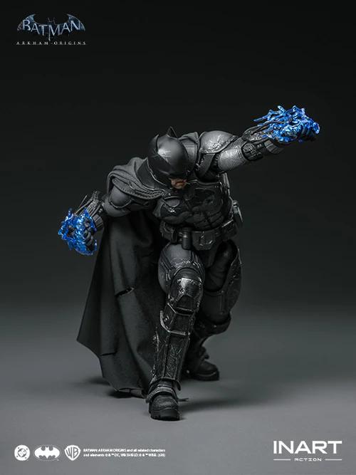 This INART Twelfth Scale Figure is officially licensed by MAG G0007. This Batman figure faithfully recreates his battle-damaged appearance from Batman: Arkham Origins, with high-precision molding preserving every minute detail from the in-game model. This figure utilizes advanced painting techniques to render Batman's intense facial features in vivid detail, employs subtle shading to pay homage to the game's atmospheric lighting, and authentically translates the weathering and damage across the Batsuit into figure form. The wired battle-damaged cape is made of a fine, premium fabric, achieving a realistic drape even at a small scale while still retaining poseability.