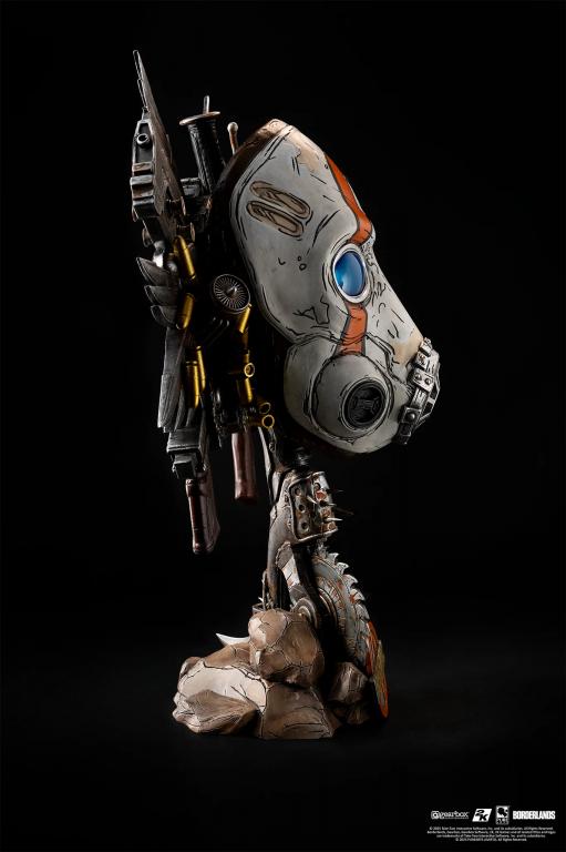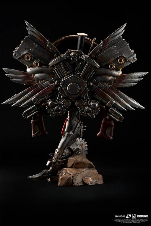 Bring the world of Pandora home with the Borderlands Psycho Bandit Art Mask Exclusive Edition! With glowing LED-lit eyes, a free-spinning rusted Buzz Axe base, and a chaotic explosion of guns, ammo, and motor engines, this 1:1 scale art mask is a shrine to mayhem.