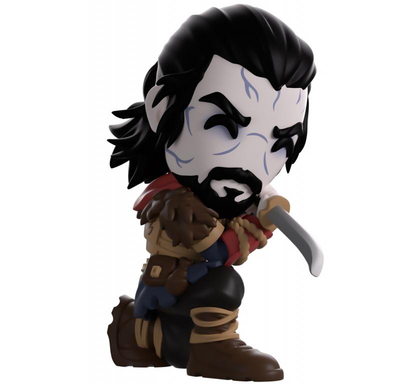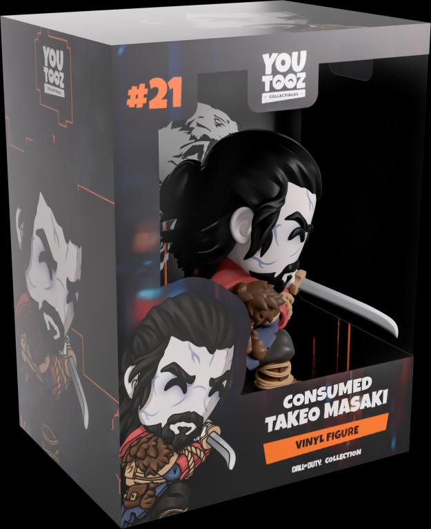 Takeo Masaki has arrived at Youtooz to show us exactly what honour is with his Youtooz debut! Crouching at 4.2 inches tall and holding the tip of his katana forward with bent arms as he readies to thrust it into the next zombie that gets in his way, long black hair is pulled into a messy bun at the back of his head as blue veins cover his pale face, and furrowed brows rest over shadowed eyes. With a red scarf wrapped around his neck over brown fur as light armour covers his torso, the ends of his tattered blue kimono hang over black pants that tuck into brown boots. The exterior of his packaging is covered in a grey hexagonal pattern with bright orange highlights, while the interior is filled with a warping dark camouflage. The hexagons then continue onto the protective sleeve that has grainy vertical blue and orange stripe,s as his figure can be seen through the large clear window at the packaging’s front. This collectible ships in a matte, embossed, protective outer sleeve and a custom-sized plastic protector for maximum protection during shipping.