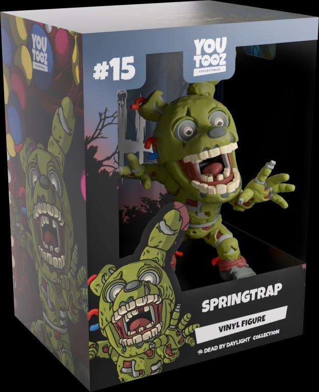 Grab a slice of 'za while Bill slices you up! Just when you think Springtrap couldn't get any scarier, his Dead by Daylight form is now a Youtooz collectible! This ravaged rabbit stands menacingly at 5 inches tall his mangled animatronic hand reaching forward over a toxic green body, while he lets out an pained scream from the fleshy mouth held within the dilapitating head. The exterior of his packaging has been illustrated to showcase Springtrap standing in front of an arch of lights and balloons. While the interior is a black silhouetted forest with a glowing red and blue haze and the white ‘Dead by Daylight’ logo at its back, this grim motif then continues onto the protective sleeve with dark trees surrounding it completely as their figure can be seen through the large clear window at its front. This collectible ships in a matte, embossed, protective outer sleeve and a custom-sized plastic protector for maximum protection during shipping.