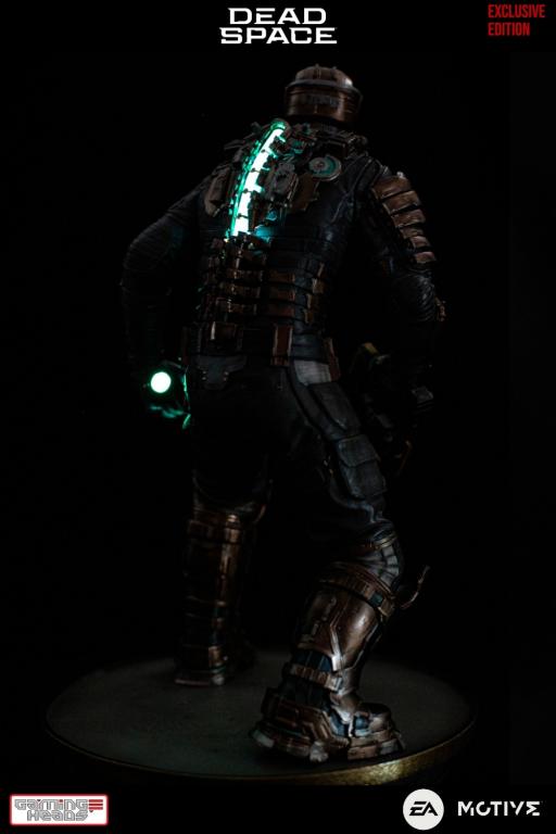 The Dead Space: Isaac Clarke (Exclusive edition) statue has a luminescent RIG health bar, helmet and palm (i.e. he lights up). In space, no one can hear you scream ... unless you have the Plasma Cutter in hand. Made using polystone resin, the Dead Space: Isaac Clarke statue is also available in a Regular edition statue (i.e. he does not light up) and comes in deluxe full-colour packaging, has a validation card and each base is hand-numbered.