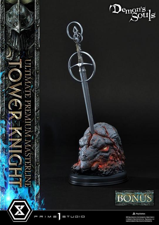 Prime 1 Studio is thrilled to introduce the first character of the Ultimate Premium Masterline Series of Demon’s Souls Statues: UPMDMS-01DXS: Tower Knight Deluxe Bonus Version from Demon’s Souls! Known as one of the greatest and most influential games of all time, Demon’s Souls launched a plethora of “Soulslike” action role-playing games since its inception. Its high difficulty and addictive gameplay place it in the well-deserved legendary territory! Step into the dark and foreboding world of Demon’s Souls, an unforgiving realm full of danger, mystery, and challenging battles. Set in the kingdom of Boletaria, Demon’s Souls puts the player in the role of a hero on a mission to save the land from an invasion of demonic hordes. Prime 1 Studio is therefore incredibly proud to reveal one of the most amazing Bosses of Demon’s Souls in the form of the Tower Knight.