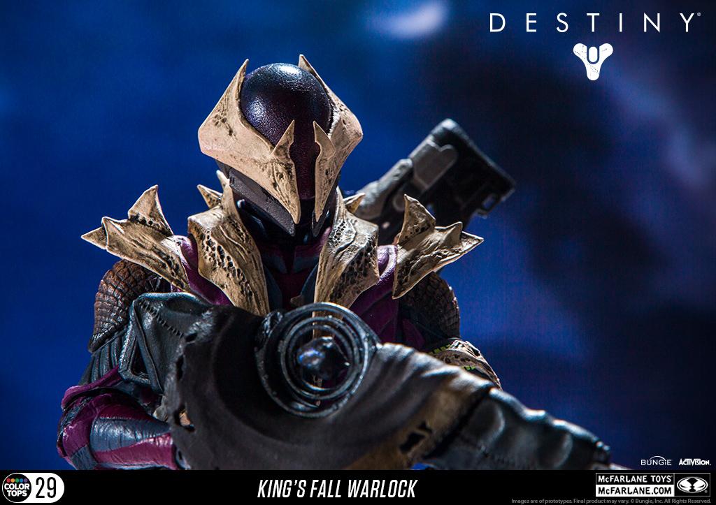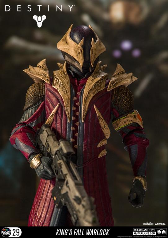 King's Fall Warlock comes equipped with the Touch of Malice scout rifle and Black Hammer sniper rifle. Fully customizable figure with 14+ points of articulation for dynamic posing. Stylized Destiny display base included.