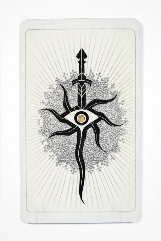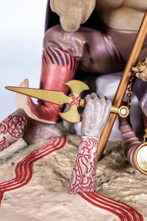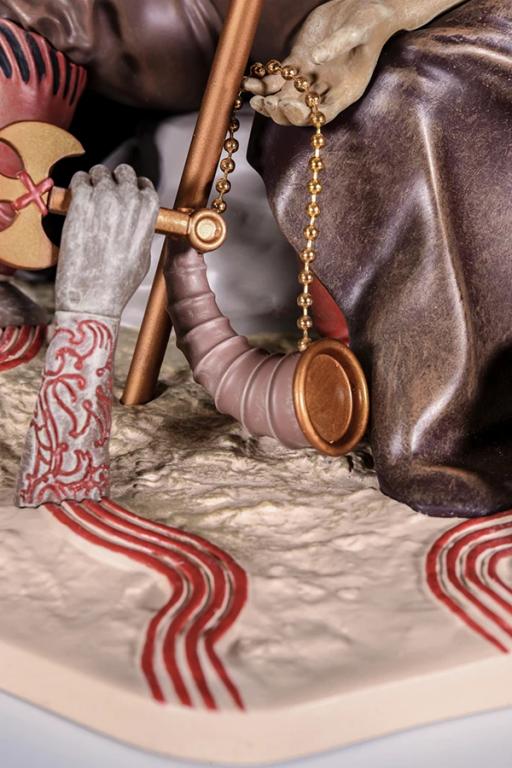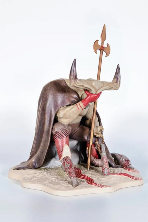 Be among the few to keep this three-dimensional reimagining of the Wheel of Fortune tarot card from Dragon Age: Inquisition. It features The Iron Bull burying his face in a hand bloodied by guilt. He is surrounded by remains that echo his form: a head with horns and a hand holding a dagger shaped like the spear resting on his shoulder. In his left hand, he holds the horn that sounded their death knell in exchange for a few lives.