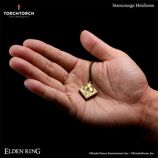 The Starscourge Heirloom, appearing in ELDEN RING, is a talisman said to strengthen its bearer’s might, engraved with a scene from a heroic tale. Its design depicts the back of a demigod once hailed as the strongest, who challenged the falling stars. The figure’s carved silhouette carries both ferocity and a quiet sense of emotion, giving the piece a mysterious allure.