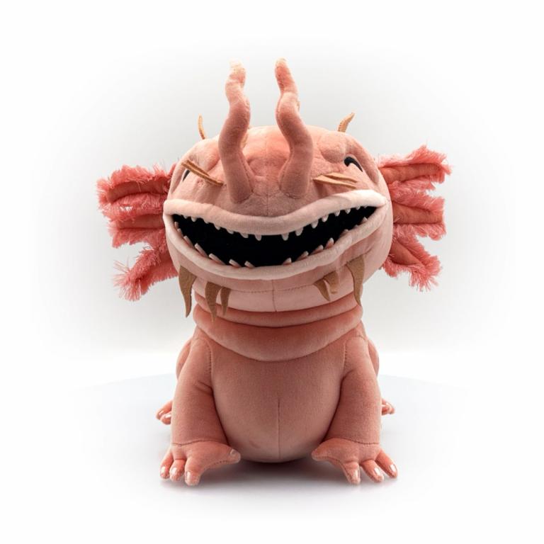 Better stay out of the water because you don’t know what’s lurking down there! Sitting on their haunches at 9 inches tall and propping their hulking body up with long arms as their fleshy pink body leads down into a long thick tail, their mouth stretches into a wide finger-filled smile which is truly the thing of nightmares. With thick brows and a series of tendrils across their face and jaw, three-pointed fins stick out from either side of their head as a long fin runs down their back. This plush is packed to the seams with 100% PP cotton and is made of the softest minky material, absolutely perfect for cuddling or completely avoiding the water with!