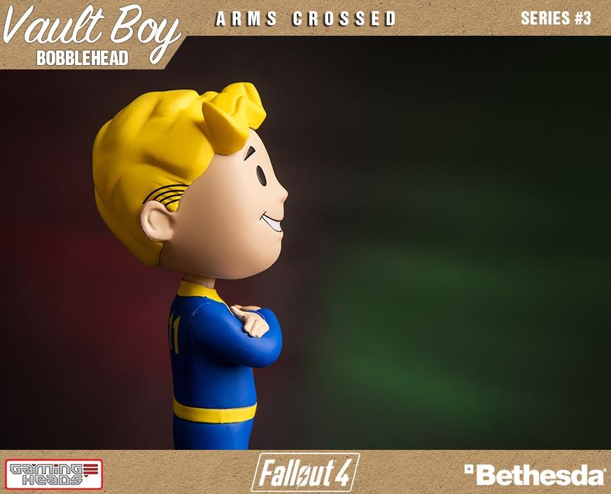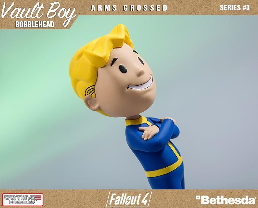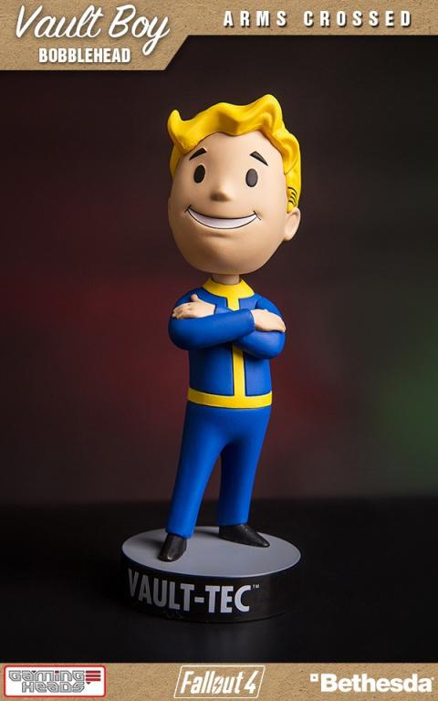 Introducing the commemorative Arms Crossed bobblehead toy from Vault-Tec. By using a bobblehead, you agree to exempt Vault-Tec from all responsibility, warranted or otherwise, for any side-effect or usage, intended or otherwise, of this product. All points are non-refundable and cannot be exchanged, so plan accordingly. Failure for this bobblehead to improve your performance is almost certainly your fault, and cannot be held against Vault-Tec or its subsidiaries.