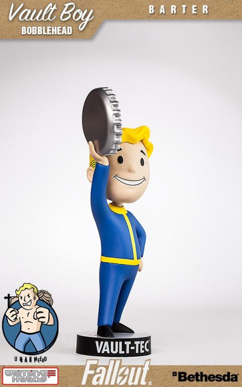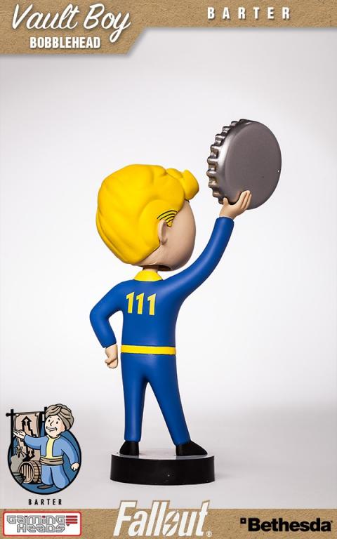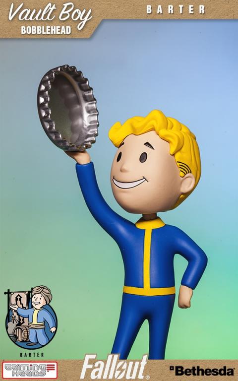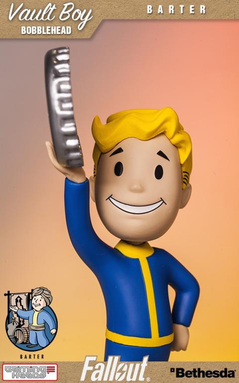 Introducing the commemorative Barter bobblehead toy from Vault-Tec. By using a bobblehead, you agree to exempt Vault-Tec from all responsibility, warranted or otherwise, for any side-effect or usage, intended or otherwise, of this product. All points are non-refundable and cannot be exchanged, so plan accordingly. Failure for this bobblehead to improve your performance is almost certainly your fault, and cannot be held against Vault-Tec or its subsidiaries.