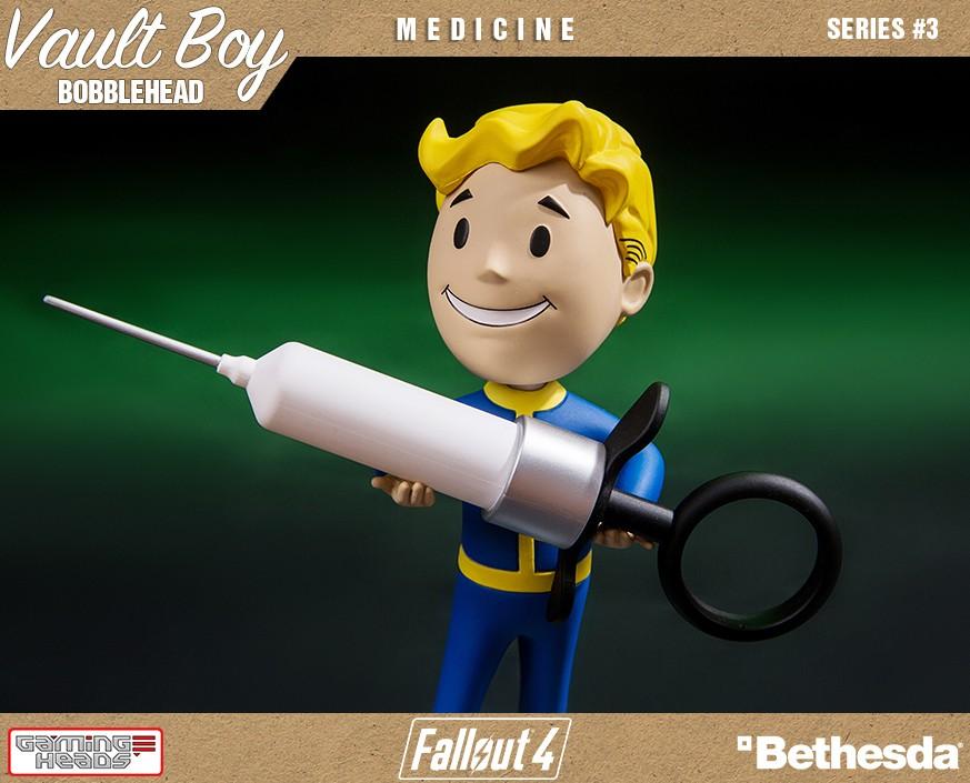 Introducing the commemorative Medicine bobblehead toy from Vault-Tec. By using a bobblehead, you agree to exempt Vault-Tec from all responsibility, warranted or otherwise, for any side-effect or usage, intended or otherwise, of this product. All points are non-refundable and cannot be exchanged, so plan accordingly. Failure for this bobblehead to improve your performance is almost certainly your fault, and cannot be held against Vault-Tec or its subsidiaries.