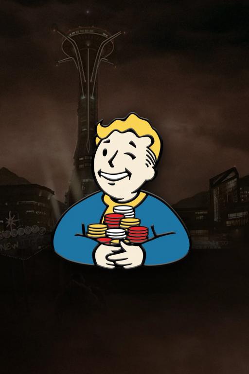 - Vault Boy Enamel Pin (1.5"): Vault Boy stacks the odds with poker chips in hand.