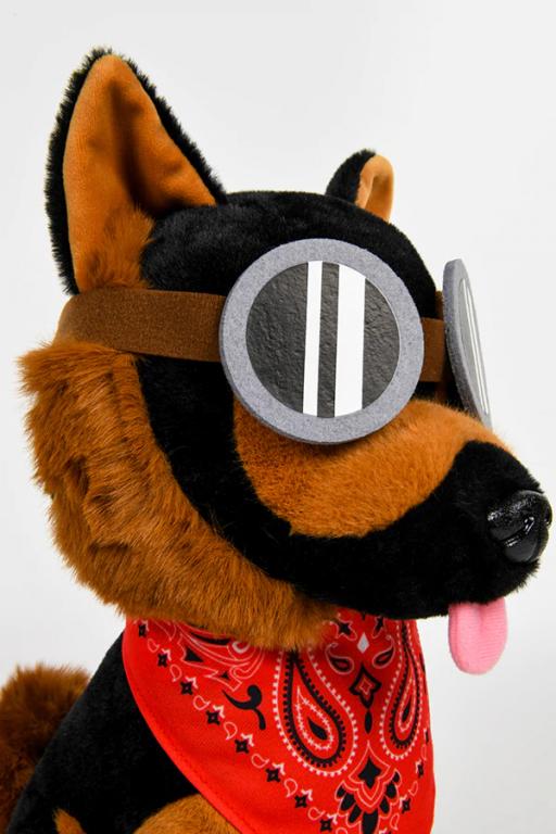 This plush version of him sits at 12 inches tall. He is bright-eyed and bushy-tailed with a little pink tongue hanging out. As a native of the Commonwealth, Dogmeat Is a remarkable survivor who can wear many hats. At some point, he was even working as a detective. Here, he is keeping it simple (and adorable) by wearing one of his signature equipment: a red bandana and a pair of welding goggles. Both can be removed or repositioned when the mood strikes you. Does he look better with the goggles on his forehead or over his eyes? View the pictures above to see for yourself.