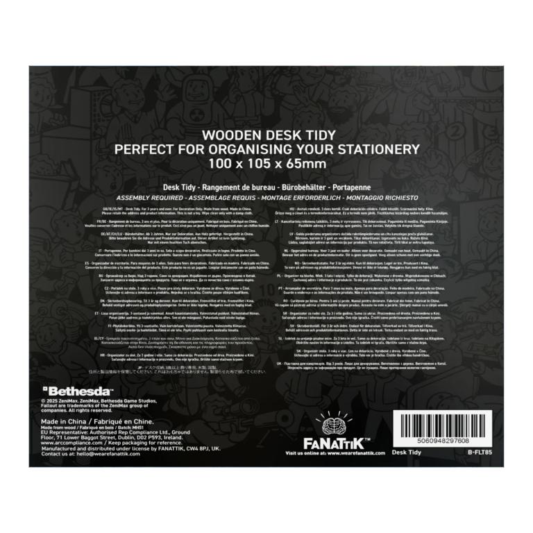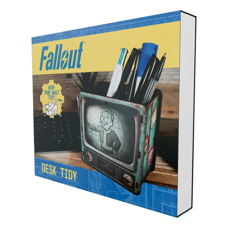 Stop your desk from going post-apocalyptic! Keep your work or gaming space organised with this officially licensed Fallout Desk Tidy. Styled like a vintage television as seen in Vault-Tec's vaults, and featuring the ever-cheerful Vault Boy on screen, this unique desk accessory is perfect for fans of the iconic video game series. Practical as well as collectible, the desk tidy is designed to help keep your space in order and is ideal for holding pens, pencils, and other similar accessories. Once assembled, it measures 105 x 110 x 63 mm, making it the perfect size for your desk, gaming setup, or display shelf.