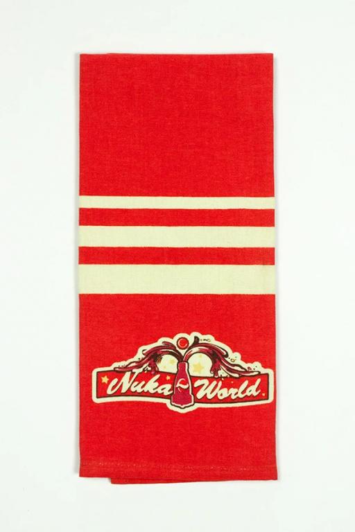 - Nuka-World: Pop your fizzy drinks open and serve them presentably on a tray lined with this coral red towel that we got from the world of refreshment.