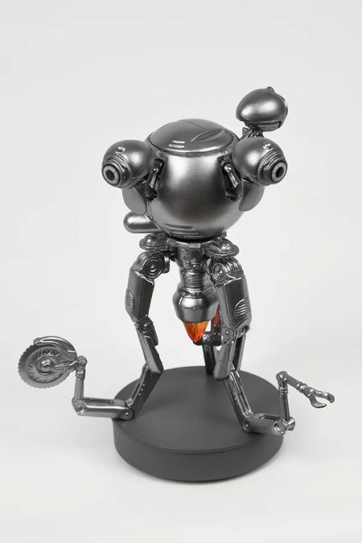 Overwhelmed by the hurly burly of your home life? Do you wish you had a companion to share the pains and joys of your daily duties? Do you dream about a helping hand or maybe three helping robotic arms? The Fallout Floating Mr Handy Figurine is here to deliver. Here he is with his buzz saw and flamer, very busily spinning ‘round and ‘round for your amusement. He might not be much help with your chores. But he’ll make up for it with his gorgeous looks and graceful twirling.
