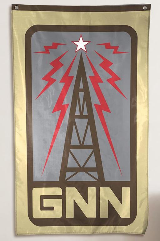 Men and ladies, boys and girls, prepare to be astounded, bedazzled, and otherwise stupefied! I am Three Dog, your master of ceremonies! Word around town is that there's a new banner appearing in settlements all around the wastelands. And it carries the proud symbol of the GNN Radio. Reliable sources even tell us that you can get one very easily. You heard it here first!