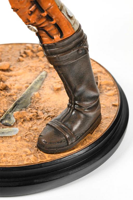 This limited edition collectible features the character in his orange inner suit, looking no less powerful than he is in his T-60. The outfit boasts intricate details like rivets, buckles, piping, stitching, weathering, dust, and hardly any damage. His clothing tells the story of a battle-hardened and elite soldier of the Brotherhood of Steel. The scar and expression on his face allude to a complex history just beneath the surface. All of these details are rendered in polyresin which allows the statue to create the convincing appearance of different materials. This replica of Danse stands proud at 7.6 inches tall. As long as he stands guard over your collection, you know that you’ll be safe from ghouls, synths, and super mutants. Each statue comes with its unique individual number and a Certificate of Authenticity.