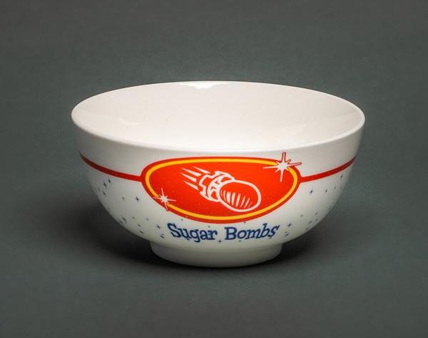 Bombs away! Before adventuring around the Wasteland, enjoy your favorite cereal in this 16 oz. Fallout Sugar Bombs cereal bowl.