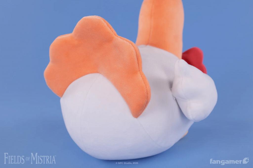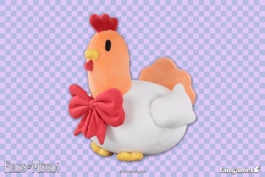 Prize-Winning Chicken Plush. This official Fields of Mistria Henrietta Jubilation Featherbottom plush was designed by prize-winning chicken illustrator Kari Fry. It's about 8.6 inches tall. This collector's plush is recommended for ages 12+