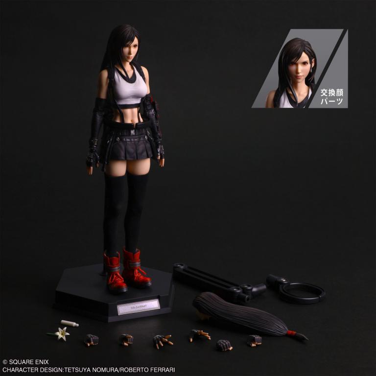 Tifa Lockhart from FINAL FANTASY VII REBIRTH joins our new high end action figure line: PLAY ARTS SHIN! Featuring several enhanced elements compared to the previous PLAY ARTS KAI series, this figure delivers a refined balance of beauty, articulation, and expressive posing possibilities unlike ever before. Redesigned hip joints and articulation system remove the traditional click mechanism, enabling exceptionally smooth movement and a wider range of dynamic posing options. New eye movement mechanism allows you to adjust her gaze, giving the figure a heightened sense of life and emotional nuance. Highly detailed sculpt and materials faithfully recreate her iconic long black hair, toned physique, and the realistic textures of her gloves and boots. Her socks utilize a stretchable fabric material for added authenticity. This figure also includes a battle expression face, dynamic back hair piece, and a variety of interchangeable hands—including one designed to hold a flower—allowing collectors to recreate numerous memorable scenes straight from the game.