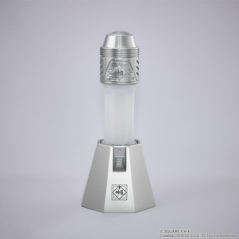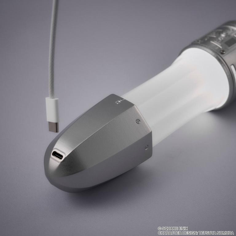 Introducing a room lantern and handheld light inspired by the helpful healing potions in FINAL FANTASY VII! The potion light can be used between two dedicated modes: Room lantern and hand-held flashlight. When inserted into its base, you can choose between blue and white light to set the necessary ambiance! Remove it from the base and use the switch to light up the end to use it as an emergency flashlight. Set the light before bedtime and give yourself a calming atmosphere and peace of mind. While battery operation is possible, the room lantern also supports USB Type-C charging, allowing you to choose the power source that best suits your needs.