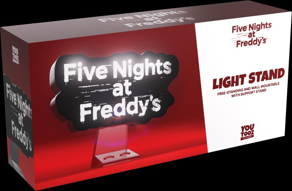 Time to brighten your (five) nights because Youtooz is here to bring you a brand new, very special, light that truly shows off your love of the fandom! The perfect addition to any collection as a stunning backdrop to your figures, this light stands at 5 inches tall atop an angled base and sees the classic worn ‘Five Nights at Freddy’s’ text on a black irregular cutout. But that’s not all, this light can be removed from its stand and hung directly on the wall of your bedroom, attic, security office or basement as the ideal centrepiece and constant reminder to check your monitors and lock the doors!