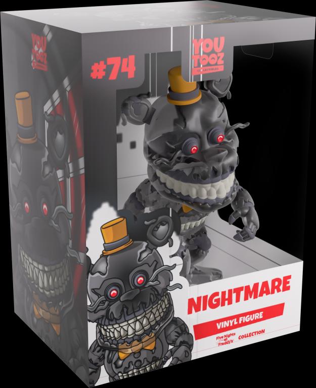 The gang’s all here to make sure you won’t sleep peacefully ever again! With a dark translucent body that perfectly blends into the shadows, Nightmare takes a menacing step forward at 5.1 inches tall, he peers ahead with pointed red eyes as long wires curl out from hollow sockets and a horrifying smile stretches across his face. With his exposed exoskeleton spine connecting a split head to his back and wearing a dark yellow top hat and matching bowtie, a second series of teeth run across the stomach of his dilapidated body. The exterior of their packaging sees him lurking towards you from a dark hallway. While the interior looks onto the white silhouette of a town underneath a black sky, this continues onto the protective sleeve where his figure can be seen through the large clear window at the packaging’s front. This collectible ships in a matte, embossed, protective outer sleeve and a custom-sized plastic protector for maximum protection during shipping.