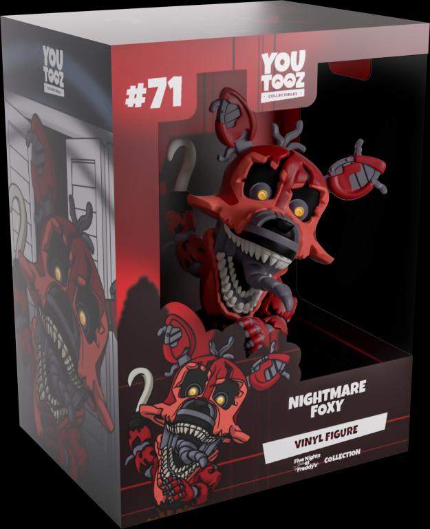 The gang’s all here to make sure you won’t sleep peacefully ever again! Standing at 5.1 inches tall and raising his hook in the air as he gets ready to throw his body forward for the jumpscare to end all jumpscares, a pair of orange eyes peer through sunken sockets as a segmented tongue curls out from between sharp rows of teeth. With his red body falling away to reveal a grey endoskeleton and wires poking from his head, tattered brown shorts sit atop grey legs as his sharp toes point out. The exterior of their packaging sees him lunging toward you from a dark bedroom. While the interior looks onto the silhouette of a town underneath a blood-red sky, this continues onto the protective sleeve where his figure can be seen through the large clear window at the packaging’s front. This collectible ships in a matte, embossed, protective outer sleeve and a custom-sized plastic protector for maximum protection during shipping.
