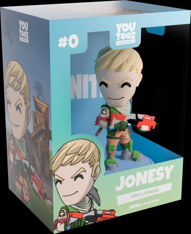 Jonesy has picked Youtooz for the ideal location to drop into battle! Standing at 4.9 inches tall and looking over his shoulder with a confident smirk crossing his face, short blonde hair sweeps forward as he holds a Legendary orange tactical shotgun to his front. Dressed in a sleeveless green top that shows off his muscular arms and the tattoo on his right shoulder, he wears brown pants that are covered in pockets along with sturdy boots that have green plates at their front and matching gloves. The exterior of his packaging sees him taking cover behind a ruined wall as explosions go off in the background, while the interior is covered in a blue gradient. A white streak then blasts across the blue and green protective sleeve as his figure can be seen through the large, clear window at the packaging’s front. This collectible ships in a matte, embossed, protective outer sleeve and a custom-sized plastic protector for maximum protection during shipping.