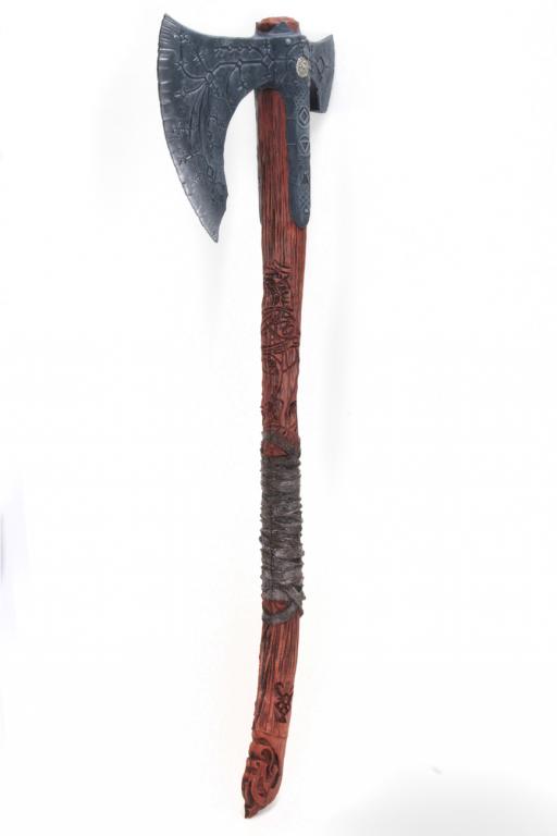 The foam replica axe measures 36 inches long and is brought to life with detailed paint deco.