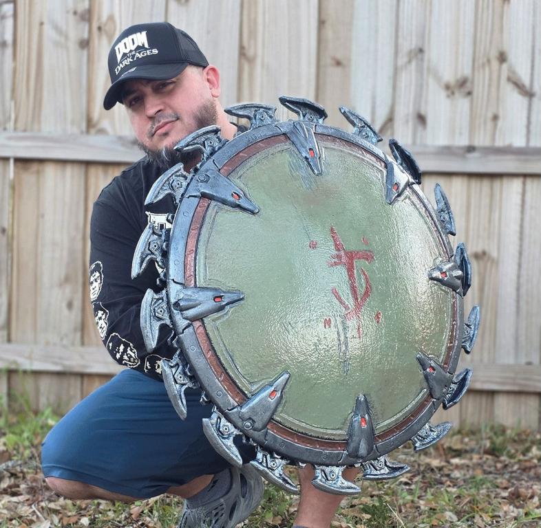 As players step into the medieval-inspired armor of the DOOM Slayer, some fans have already been dreaming up - you guessed it - cosplay ideas! Well, we teamed up with id Software enthusiast and talented fabricator/artist Myke Hernandez, aka GameQraft, to bring you one of the DOOM Slayer’s newest demon-squashing tools to life: The Shield Saw! GameQraft created this stunning 1:1 full-scale replica of The Dark Ages’ Shield Saw and even produced a second model that he shared with id Software for display at their Texas office. The generosity doesn’t stop there, though, as GameQraft is also sharing his .STL file pack for the DOOM community to download for 3D printing for themselves!