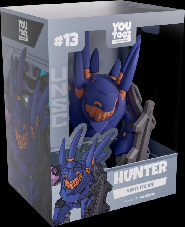 Crashing through the walls of Youtooz for their explosive debut! Kneeling at 5.1 inches tall and thrusting a purple assault cannon with green cartridges forward with their right arm, they slam a thick grey metal shield into the ground in front of their left knee as protection from oncoming fire. With a mass of orange Lekgolo swarming inside the grey and blue armor to make up their thick body, a small angled helmet covers where their head should be as six long spikes extend from their back. The exterior of their packaging looks into the purple and grey hallways of a ship, while the light grey interior is covered in angled patterns which extend onto the protective sleeve with the UNSC logo as their figure can be seen through the large clear window at the packaging’s front. This collectible ships in a matte, embossed, protective outer sleeve and a custom-sized plastic protector for maximum protection during shipping.