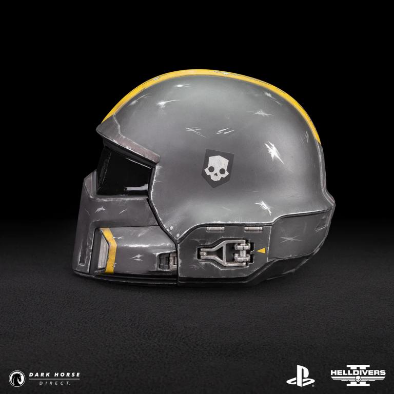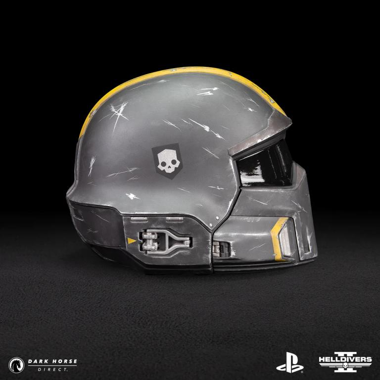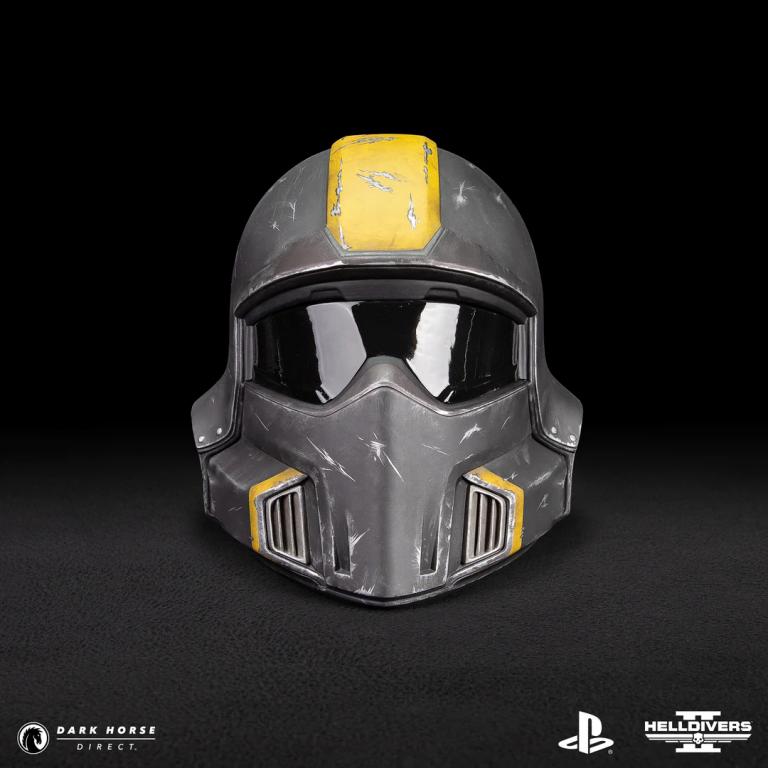 Dark Horse and Arrowhead Game Studios are thrilled to offer the finest of Helldivers, the Helldivers 2 B-01 Tactical (Battle Damaged) 1:1 Helmet Replica! For those Helldivers who have fought on the frontlines of Malevelon Creek or defended Super Earth while spreading managed democracy, this helmet pays tribute to your bravery. The B-01 V4 has battle-worn scuffs, a singular bold yellow stripe, a tinted see-through visor, interior padding, and the Helldivers skull insignia. Measuring at 11” tall by 10.7” wide and 13.5” deep, the B-01 Tactical Helmet Replica (Battle Damaged) 1:1 Replica will have you feeling like you’re fighting from the comfort of your very own home.