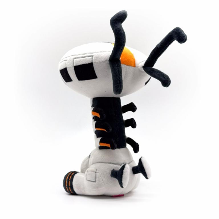 Tallnecks are usually solitary beings, but one has decided they want to come home with you! Sitting at 9 inches tall with a long segmented neck leading up to a round disk head that has a data node on the top and a pair of black antennae sticking out from the back, spines run down their back to a pair of tails on their haunches as black and orange feet are kicked forward. This plush is packed to the seams with 100% PP cotton and is made of the softest minky material, absolutely perfect for cuddling or sending out signals with!