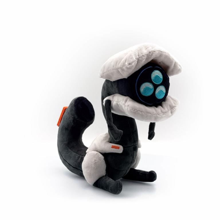 There’s no avoiding the gaze of this Watcher with their plush debut! Sitting at 9 inches tall with a trio of blue ‘eyes’ that make up their ocular sensor array looking out from a long white head that has small limbs hanging from either side, their long grey neck curves down to amored haunches and into a thick tail that wraps forward as thin legs lay flat on the ground. This plush is packed to the seams with 100% PP cotton and is made of the softest minky material, absolutely perfect for cuddling or scouting the area with!