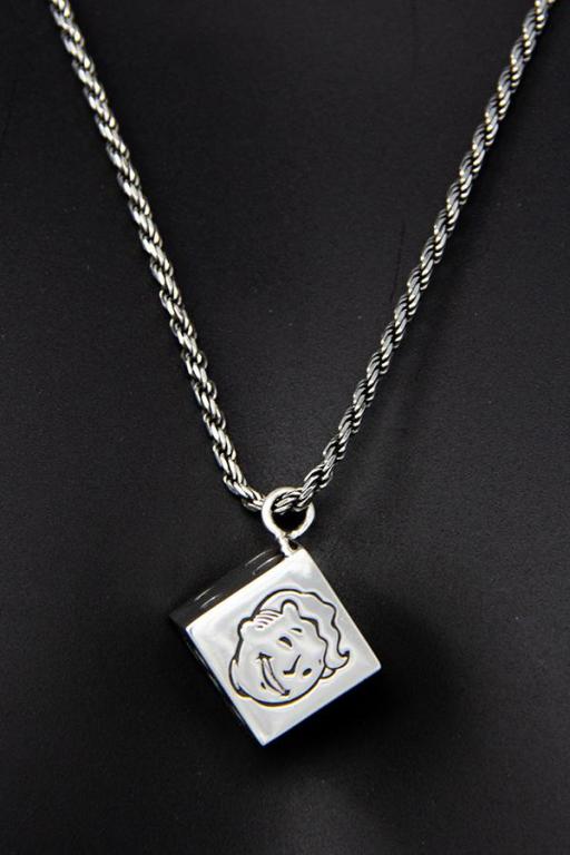 Make your own luck with this fabulous statement piece. It features a 6-sided dice as a pendant, but with a winking Vault Boy and the Radiation symbol each occupying a face. These are etched into the dice, creating crisp designs on the polished surface. Dress like a New Vegas high roller with this lucky little necklace.