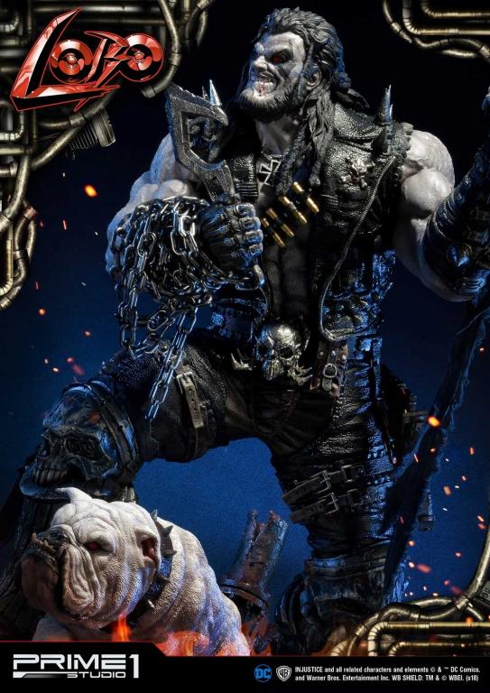 Prime 1 Studio is proud to present 1/3 scale UMMDCIJ-01: Lobo from Injustice: Gods Among Us. Injustice is an action fighting video game based on the DC Comics universe which Lobo is available as a DLC Character in this game. Lobo is the last of his known alien race, the Czarnians. He is a violent and destructive man through and through, even to his Czarnian name which means "he who devours your entrails and thoroughly enjoys it." He also committed mass genocide against his entire race using a swarm of flying scorpions. Seeing nothing else to do, Lobo spent his days as a bounty hunter, killing anyone as long as the price is right. He's also been one to team up with different people in the DC Universe such as Green Lantern and Superman. Lobo stands with Dawg, his follower alien dog, approximately 39 inches tall. Optional Space Dolphins set statue can be purchase separately to complement this product! This is a must-have statue for all Lobo fans!