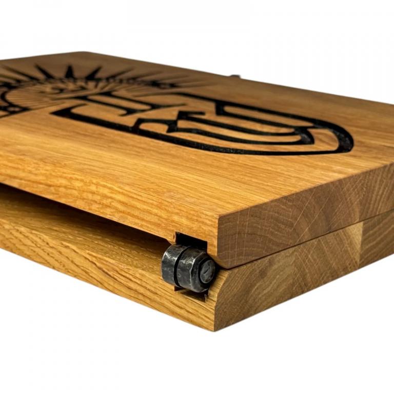 Farkle – the legendary dice game from Kingdom Come: Deliverance II! When the fire burns low, the meal is gone and the beer is still cold, it’s time to roll the dice! Farkle is a simple yet endlessly fun game that can bring a whole group to life – whether luck is on your side or every roll is a disaster. Just like in Kingdom Come: Deliverance, you can now play it at home, in a tavern or anywhere friends gather for a good time. The set includes 12 premium wooden dice with the Warhorse Studios logo and a luxurious foldable oak game board adorned with the burned Kingdom Come: Deliverance 2 emblem. Every piece is handcrafted by our artisans – from solid oak to metal hinges and latches. No mass production, but honest Czech craftsmanship for fans who want something real. Created in cooperation with the Warhorse Studios creative team to be as faithful to the game as possible. Collector quality with no compromises.
