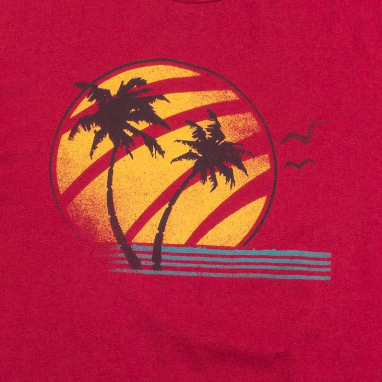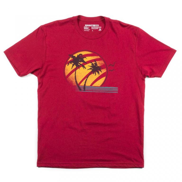 The sunset paradise design that Ellie wears in-game for most of The Last of Us on front. Men's 100% premium cotton t-shirt in cardinal red.