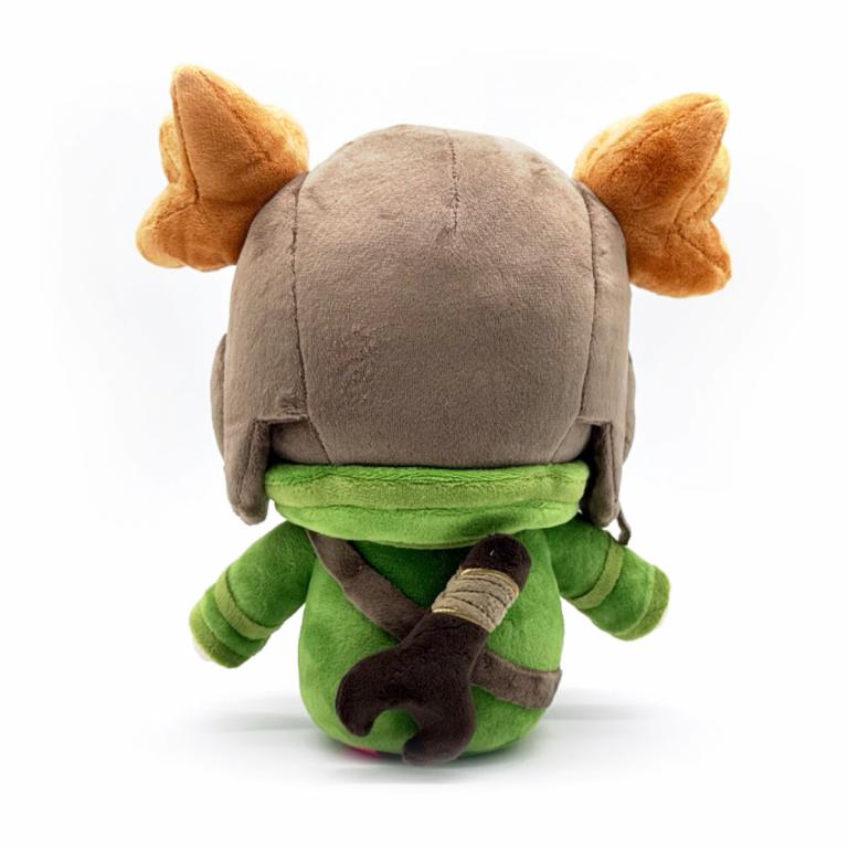 It's time for another dark adventure and we're here to introduce our newest hero, Alone! Sitting at 9 inches tall with her bare feet kicked forward, she's dressed in a green jumpsuit which has a brown belt strapped across her chest to keep a wrench always at the ready on her back. With the collar of her jumpsuit covering her mouth as large goggles obscure her eyes, a brown pilot hat wraps over her head as a pair of orange pigtails poke out from either side. This plush is packed to the seams with 100% PP cotton and is made of the softest minky material, with accents of buttons and felt, perfect for cuddling or being quiet with!