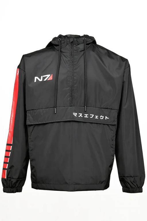 Gear up for your next mission in style and comfort. Inspired by Systems Alliance tech, the Mass Effect N7 Anorak Jacket was made to protect you as you explore the outdoors—from Thessia to Tuchanka and back to Earth! It features an adjustable hood, elasticated sleeve cuffs, and lots of pockets to keep your essentials safe. Written on the back of the jacket and on the flap of the front pouch is the Japanese katakana for Mass Effect.