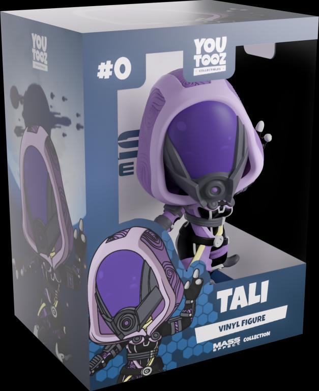 We’re in need of some desperate mechanical repairs and Tali’s arrived to help us get running again with her Youtooz debut! Standing at 4.3 inches tall with her arms outstretched as she points a 3-fingered hand toward the sky, her face is covered by a long purple visor as her helmet curves forward to a circular mouthpiece. With a thick purple hood adorned with swirling patterns draped over her head that runs down her body to wrap around her waist and thighs, she wears a black belt around her waist as a dagger is strapped to the side of her white boot. The exterior of her packaging sees a fleet of spaceships launching through a star-filled sky. While the interior is a stark white with deep blue running around the top and bottom, this then continues on the protective sleeve where her figure can be seen through the large clear window at the packaging’s front. This collectible was designed in collaboration with community member @therealracckun and ships in a matte, embossed, protective outer sleeve and a custom-sized plastic protector for maximum protection during shipping.