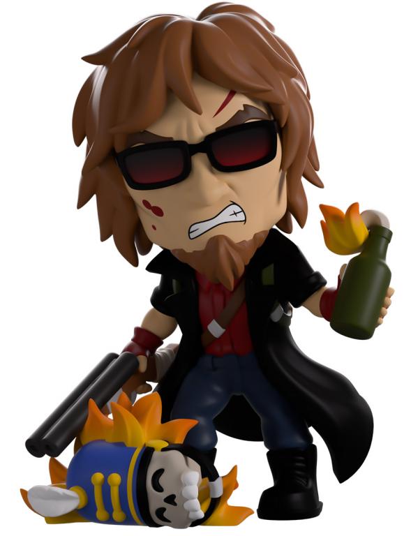 It’s time to rock and roll with a little (or lot) of violence with Postal Dude’s return to Youtooz! Standing at 4.4 inches tall as he holds a flaming Molotov cocktail in a red-gloved hand that he readies to launch towards anyone unlucky enough to get in his way, the sawn-off shotgun in the other hand is ready to finish off the job if the flames don’t. With a violent grimace crossing his blood smattered face as red lensed glasses cover his eyes and shaggy brown hair falls from his head, he wears a long black trench coat over a red shirt and blue jeans as a blazing skull rests at his feet. The exterior sees a snowy cabin with a ragged looking snowman standing out front, white the interior is a dark cave filled with countless skulls. The protective sleeve then looks onto a cracking brown-green ground with a pair of shotgun shells and smeared blood as his figure can be seen through the large, clear window at the packaging’s front. This collectible ships in a matte, embossed, protective outer sleeve and a custom-sized plastic protector for maximum protection during shipping.