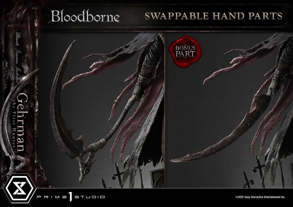 The bonus version also includes the Burial Blade in its untransformed, curved sword form. With it, you can recreate Gehrman's elegant flurry of strikes. This exclusive part expands your display options and ignites the imagination. Born of the latest sculpting and painting techniques, Gehrman finally makes his appearance in Prime 1 Studio’s "Bloodborne" series. To all hunters who still endure the long night and the dream—we offer this tribute.