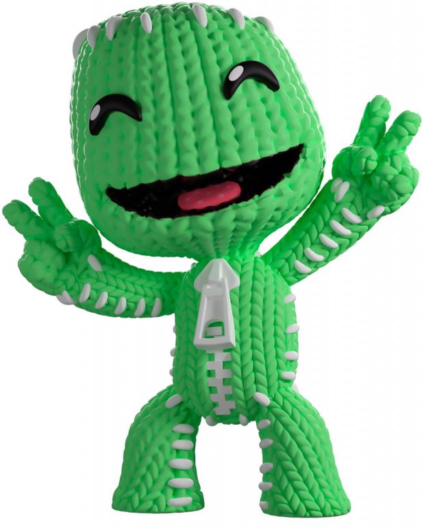 Sackboy has landed back at Youtooz, and he’s positively glowing with his new figure! Standing at 4.5 inches tall and throwing out a peace sign with each hand as his head cocks to the side, an adorably excited smile stretches underneath his gleaming eyes as white stitching runs along his green sack body, and a thick silver zipper sits under his chin with the zip leading down his torso. The exterior of his packaging shows Sackboy blasting through space in his rocket as green clouds swirl around him. The interior is covered in a glowing green stitched pattern, which continues onto the purple protective sleeve that has stars hanging from the top as his figure can be seen through the large, clear window at the front. This collectible ships in a matte, embossed, protective outer sleeve and a custom sized plastic protector for maximum protection during shipping.