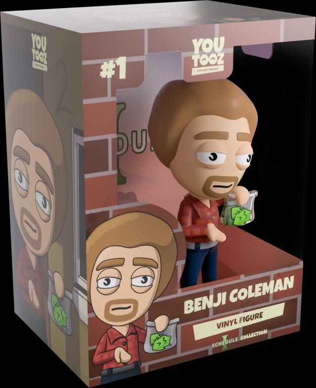 Benji’s got a deal for you! His Youtooz debut! Wait… what did you think it was? Standing at 4.7 inches tall and gesturing towards the bag of vibrant green ‘product’ held in a raised right hand, an awkward smile crosses his face underneath half-lidded eyes as light brown hair covers his head. Wearing a red plaid shirt that’s tucked into his blue pants, a brown belt wraps around his waist as light slides over his feet. The exterior of his packaging sees him standing in front of the blue door of his motel room, while the interior looks onto a dusty pink desert with a single barren road running over a shaded hill. The protective sleeve is then covered in plants under hazy purple light as his figure can be seen through the large, clear window at the packaging’s front. This collectible ships in a matte, embossed, protective outer sleeve and a custom-sized plastic protector for maximum protection during shipping.