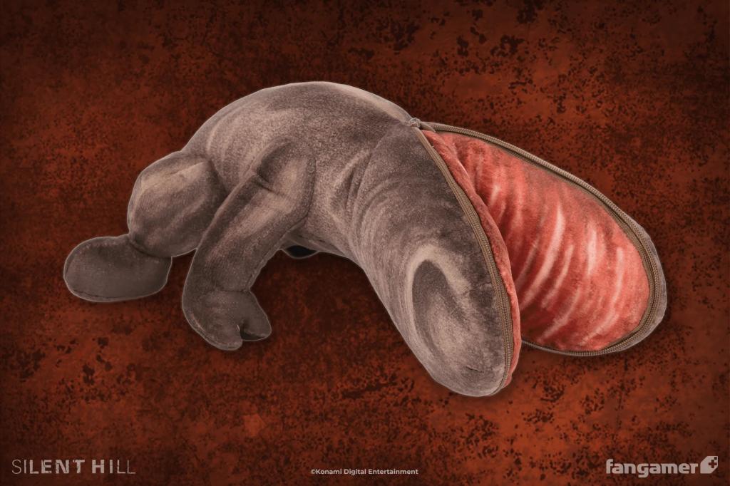Who's afraid of a plush reptile? This official SILENT HILL plush was designed by Eyes5. It's about 10 inches long. The Split Head plush's mouth zips shut, making it a useful hiding spot for journal entries, fairy tales, scraps of paper, and other environmental-storytelling elements.