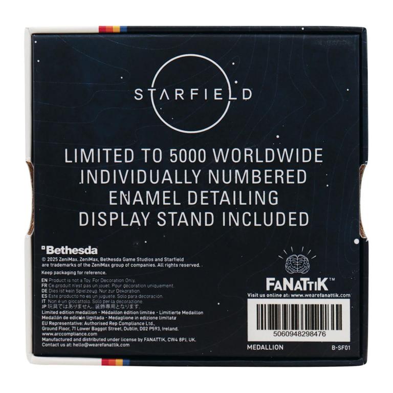 Whether you’re recruiting for the Constellation or just want a space age collectible, this medallion is a must-have for every Starfield fan ready to explore the final frontier. Reach for the stars with this Starfield Constellation limited edition metal medallion, an out of this world collectible for fans of Bethesda’s epic space adventure. Officially licensed and crafted with satin nickel plating, this medallion is a shining reminder to boldly go where no fan has gone before. Each medallion is individually numbered on the reverse and limited to just 5,000 worldwide, making it a truly stellar addition to any collection. At 85mm in diameter, it’s perfect for display on your shelf, desk, or even in your personal command centre.